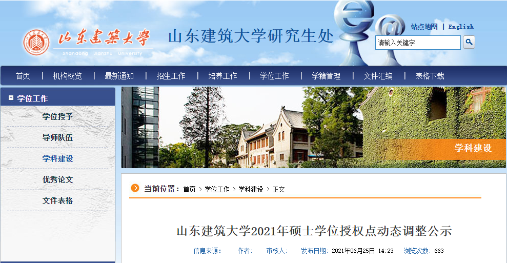 山東建筑大學(xué)2021年碩士學(xué)位授權(quán)點(diǎn)動(dòng)態(tài)調(diào)整公示”,一起來看~
