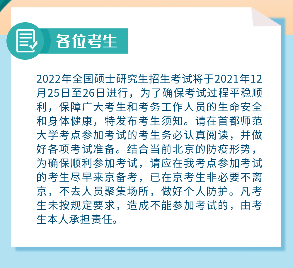 首都師范大學(xué):2022年全國碩士研究生招生考試考生須知