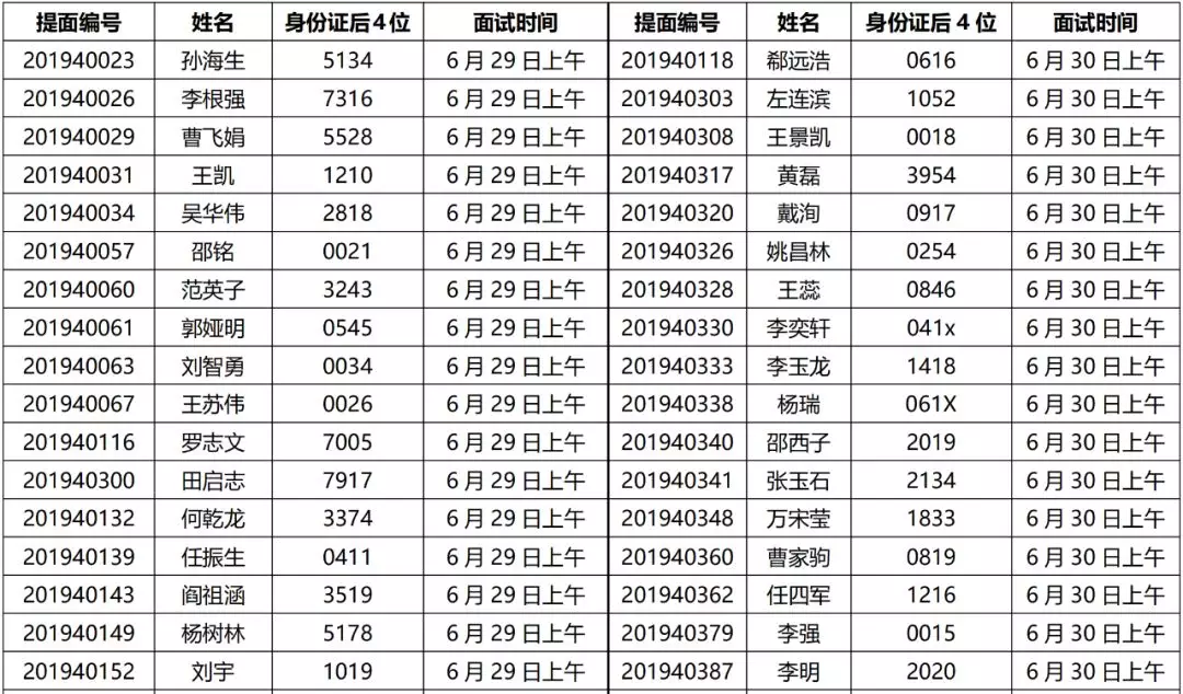 三、面試時間:2019年6月29、30日 8:30-12:00,13:30-17:00