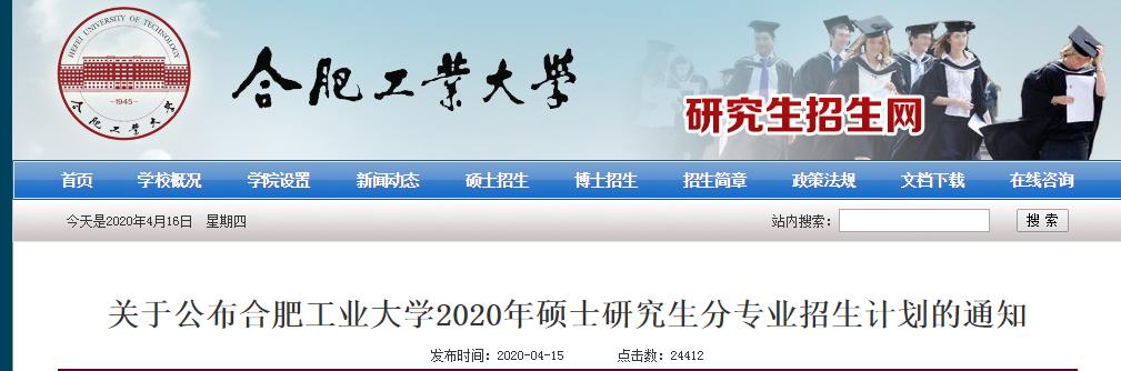 合肥工業(yè)大學院校公告:合肥工業(yè)大學公布關于2020年碩士研究生分專業(yè)招生計劃的通知