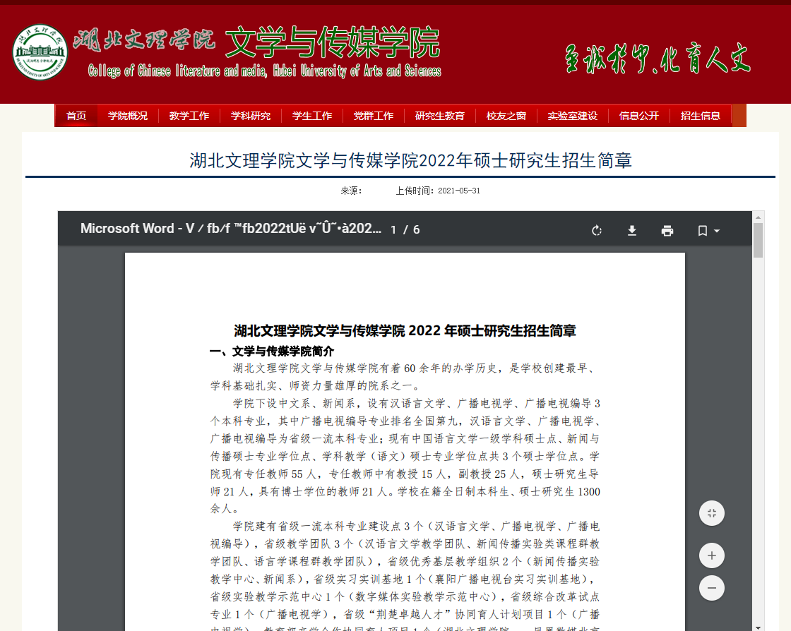 2022考研招生簡(jiǎn)章:湖北文理學(xué)院文學(xué)與傳媒學(xué)院2022年碩士研究生招生簡(jiǎn)章”,更多相關(guān)信息,請(qǐng)持續(xù)關(guān)注本網(wǎng)站!