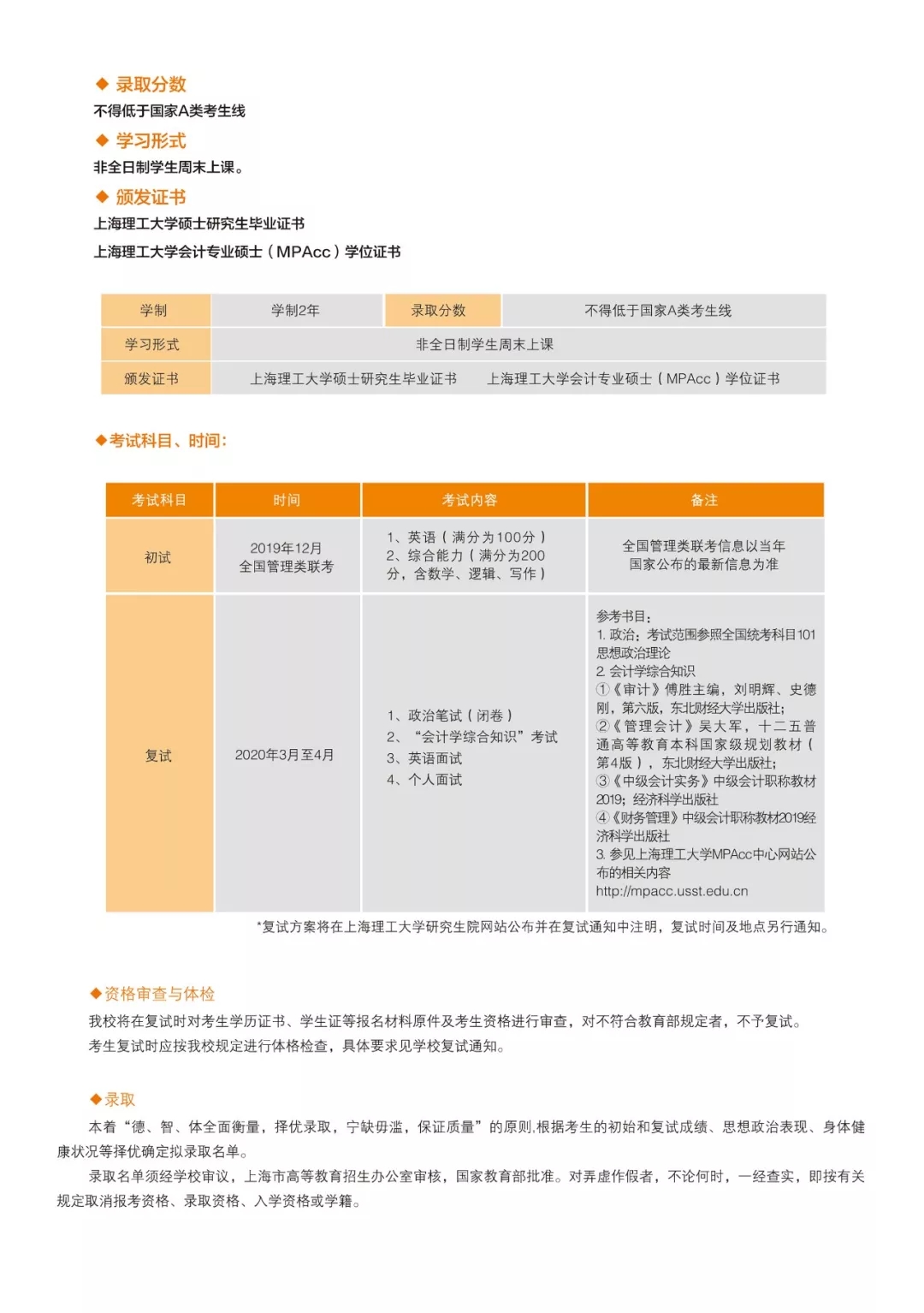 以上就是“上海理工大學會計專碩(MPAcc)2020年招生簡章”的全部內(nèi)容!更多2020年招生簡章內(nèi)容,盡在“招生簡章”欄目!