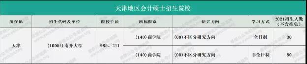 南開大學2021年全日制會計專碩計劃招生30人(不含推免)非全日制會計專碩計劃招生80人