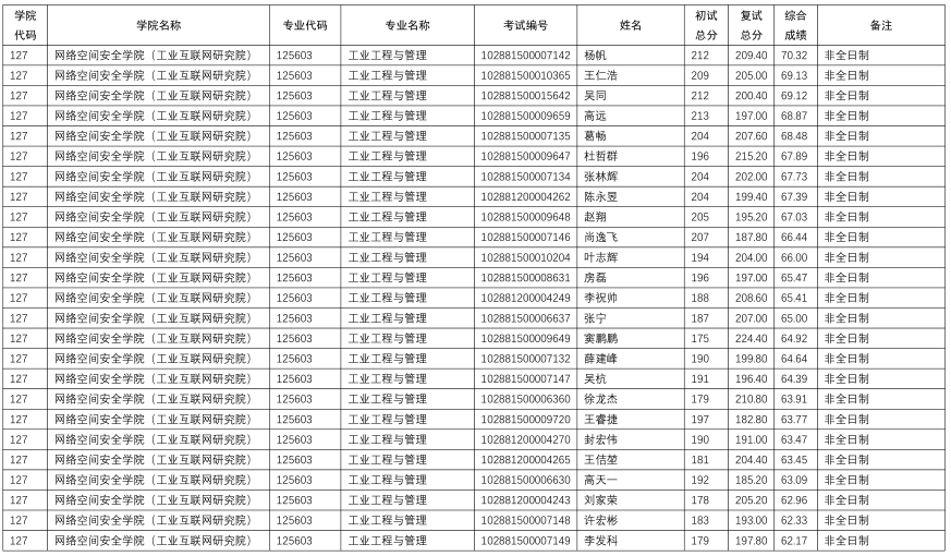 南京理工大學(xué)網(wǎng)絡(luò)空間安全學(xué)院2021年工業(yè)工程與管理專業(yè)擬錄取人數(shù)為非全日制30人(注:錄取人數(shù)均為一志愿)