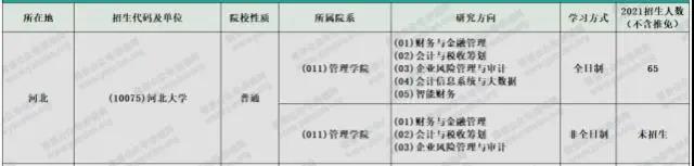 河北大學(xué)2021年全日制會計專碩計劃招生65人(不含推免),非全日制未招生