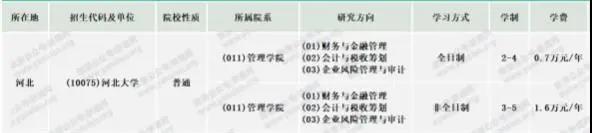 河北大學(xué)2020年全日制會計專碩學(xué)制學(xué)費:學(xué)制為2-4年,學(xué)費為0.7萬元/年;非全日制會計專碩學(xué)制學(xué)費:學(xué)制為3-5年,學(xué)費為1.6萬元/年