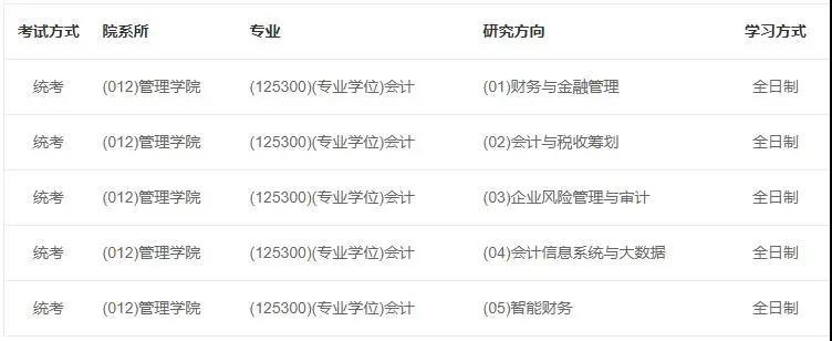 會計專碩全日制計劃招生20人,非全日制計劃招生129人(不含推免)
