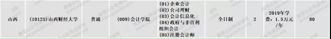 山西財經(jīng)大學2019年全日制會計專碩學制學費:學制為2年,學費為1.5萬元/年