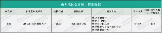 山西財經(jīng)大學2021年會計專碩全日制計劃招生118人(不含推免)