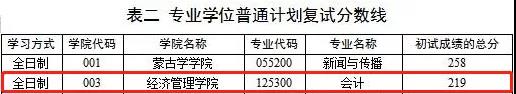 山西財經(jīng)大學2021年會計專碩復試分數(shù)線總分:220
