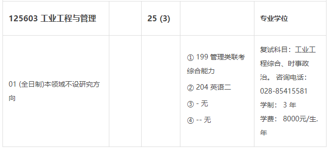 西南交通大學(xué)2021年工業(yè)工程與管理專業(yè)擬錄取人數(shù)為全日制25人
