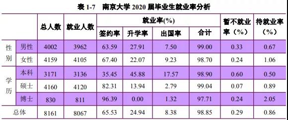 2020年南京大學(xué)畢業(yè)生就業(yè)質(zhì)量報告部分內(nèi)容: