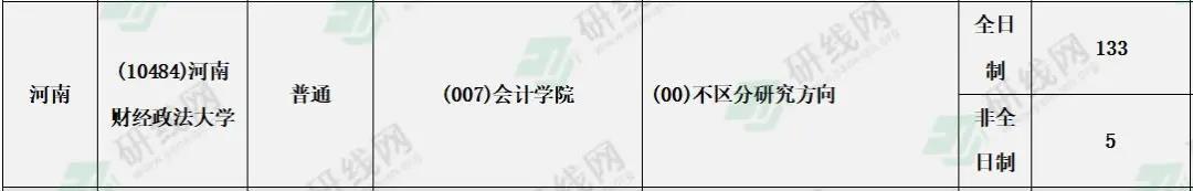 河南財經(jīng)政法大學(xué)2021年會計專碩全日制計劃招生133人非全日制計劃招生5人