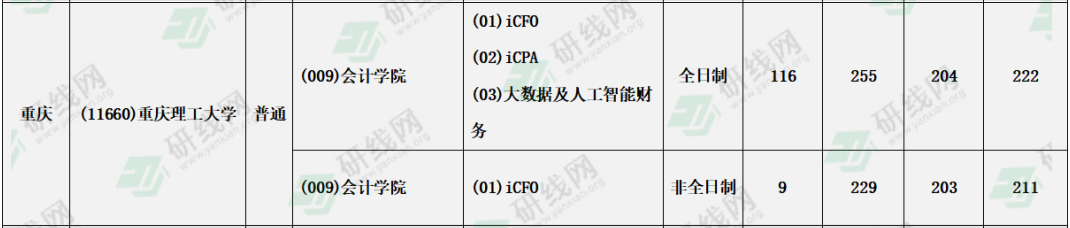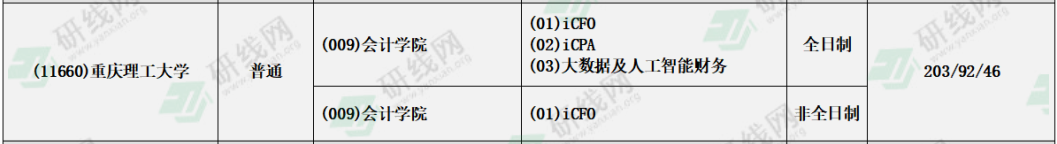 重慶理工大學(xué)2021年全日制/非全日制會(huì)計(jì)專碩復(fù)試分?jǐn)?shù)線:203/92/46