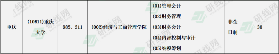 重慶大學(xué)2021年非全日制會(huì)計(jì)專碩計(jì)劃招生30人。