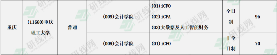 重慶理工大學(xué)2021年會(huì)計(jì)專碩全日制計(jì)劃招生95人非全日制計(jì)劃招生70人