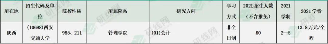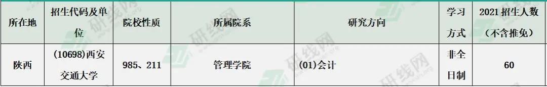 西安交通大學(xué)2021年非全日制會計(jì)專碩計(jì)劃招生60人