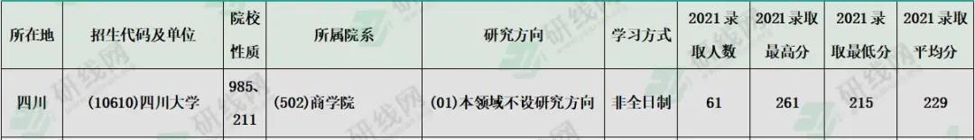 四川大學(xué)2021年非全日制會計(jì)專碩擬錄取人數(shù)為61人