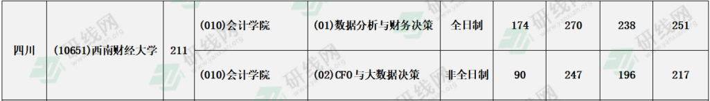 西南財經(jīng)大學2021年全日制會計專碩計劃招生111人;非全日制會計專碩計劃招生157人。