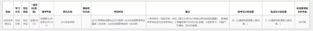 2021年非全日制法律(非法學(xué))擬招生人數(shù)是20人