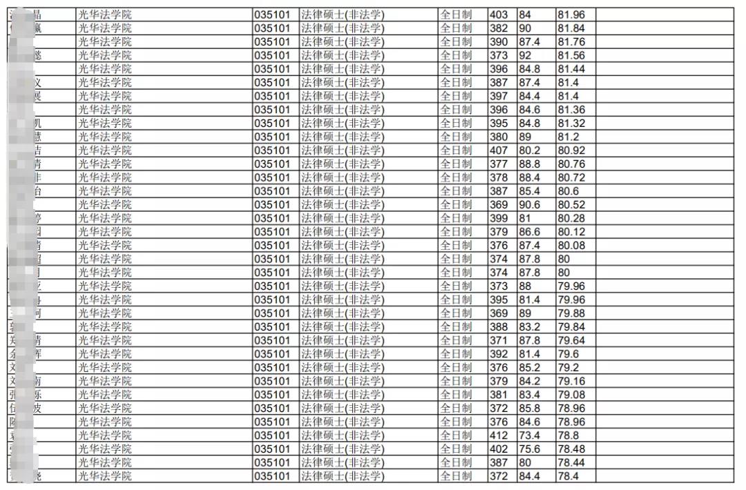 全日制法律(非法學(xué)):實(shí)際錄取73人,最高分413分,最低分364分;