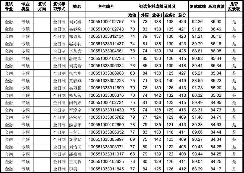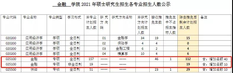 金融碩士計劃招生112人金融學(xué)院(非全日制)