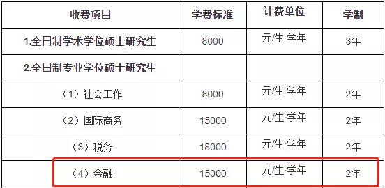 中南財經(jīng)政法大學(xué)金融專碩全日制學(xué)制學(xué)費為:學(xué)制:2年,學(xué)費:1.5萬元/生·學(xué)年;非全日制學(xué)制學(xué)費為:學(xué)制:2年,學(xué)費:3.5萬元/生·學(xué)年。