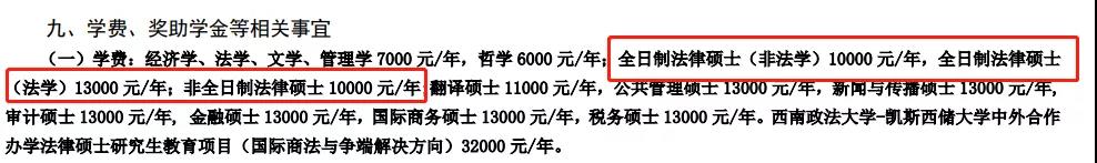 非全日制:法律碩士學(xué)制 3 年,學(xué)費(fèi)10000/年。