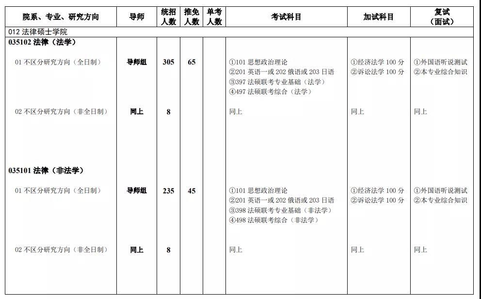 2021年全日制法律(非法學(xué))擬招生人數(shù)是235人