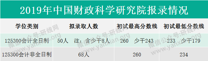 雖然2020年的復試分數(shù)線和報錄比還未定,但是研線網(wǎng)整理了中國財政科學研究院會計專碩2019年錄取情況和近三年的復試分數(shù)線,供大家參考。