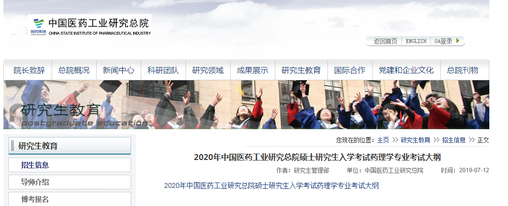 中國(guó)醫(yī)藥工業(yè)研究總院日前在官網(wǎng)發(fā)布了2020年碩士研究生考試大綱,今天小編整理了“2020年中國(guó)醫(yī)藥工業(yè)研究總院碩士研究生入學(xué)考試藥理學(xué)專業(yè)考試大綱”的相關(guān)內(nèi)容,希望能對(duì)有報(bào)考意愿的小伙伴有所幫助!