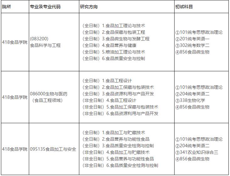 以上就是“2021考研專業(yè)目錄:四川農(nóng)業(yè)大學食品學院2021年碩士研究生招生專業(yè)目錄”的全部內(nèi)容!祝您考研成功!
