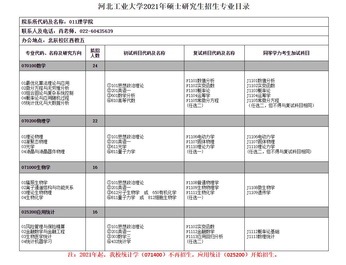‘’2021考研專業(yè)目錄:河北工業(yè)大學(xué)理學(xué)院2021年碩士研究生招生專業(yè)目錄”的相關(guān)內(nèi)容,希望對大家有所幫助!