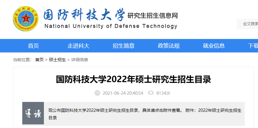點(diǎn)擊查看:國防科技大學(xué)2022年碩士研究生招生目錄