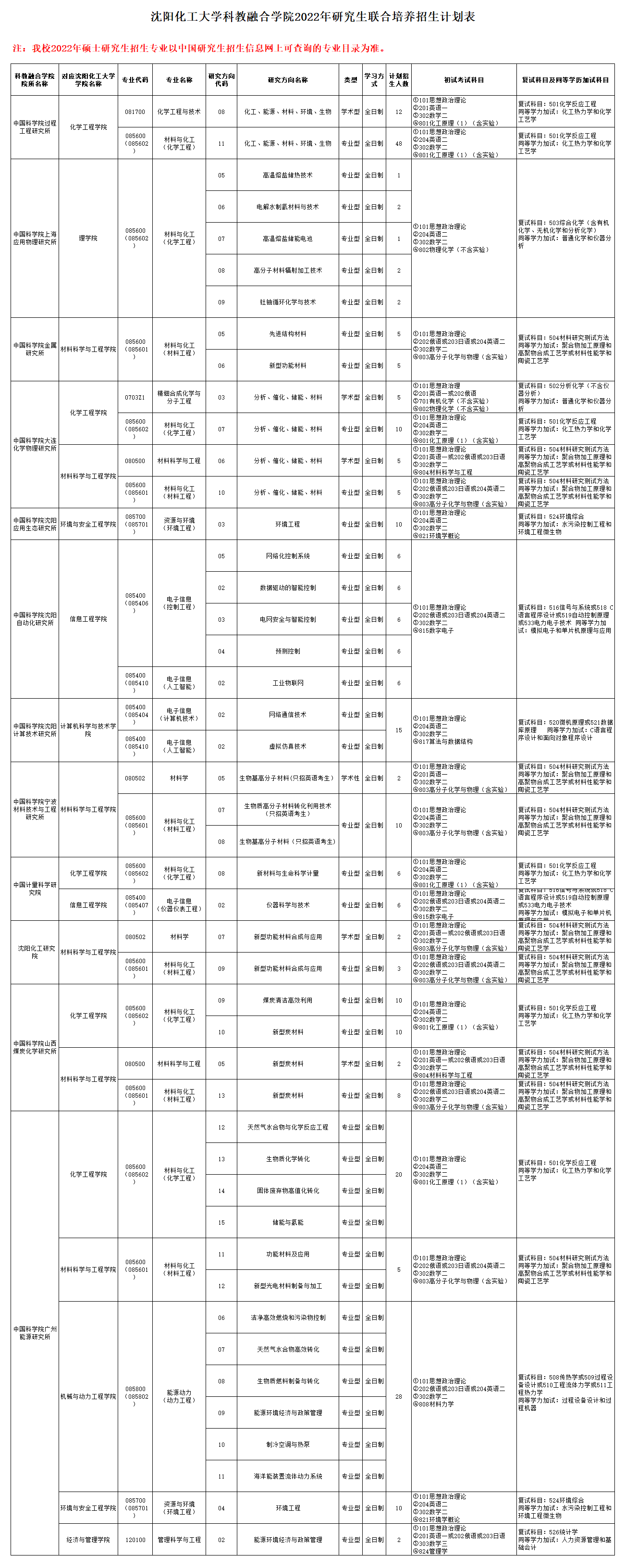 以上就是“2022考研專業(yè)目錄:沈陽化工大學(xué)科教融合學(xué)院2022年研究生聯(lián)合培養(yǎng)招生計(jì)劃表”的全部內(nèi)容!祝您考研成功!更多相關(guān)信息請持續(xù)關(guān)注本網(wǎng)站!