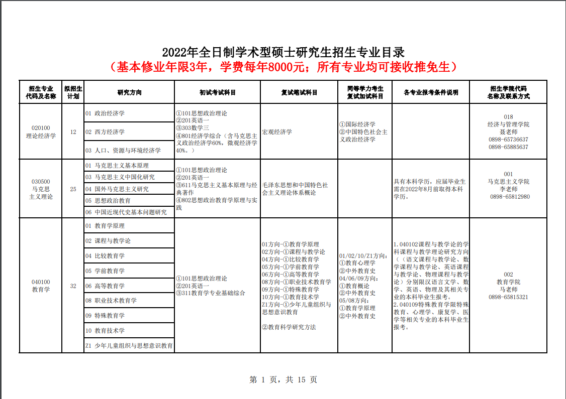 點(diǎn)擊查看更多:海南師范大學(xué)2022年碩士研究生招生專業(yè)目錄(20210913)