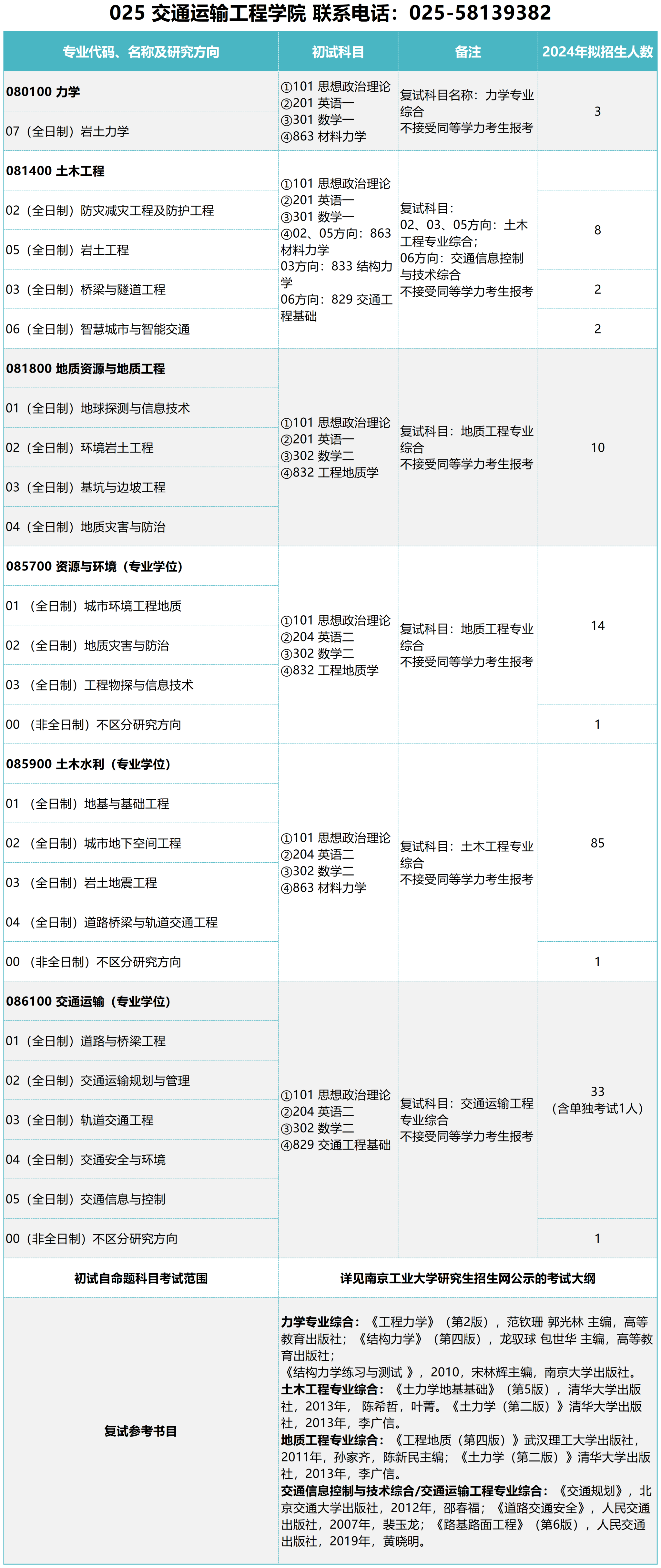 2024考研專業(yè)目錄:南京工業(yè)大學(xué)交通運(yùn)輸工程學(xué)院2024年碩士研究生招生專業(yè)目錄”的全部內(nèi)容!祝您考研成功!更多相關(guān)信息請持續(xù)關(guān)注本網(wǎng)站!