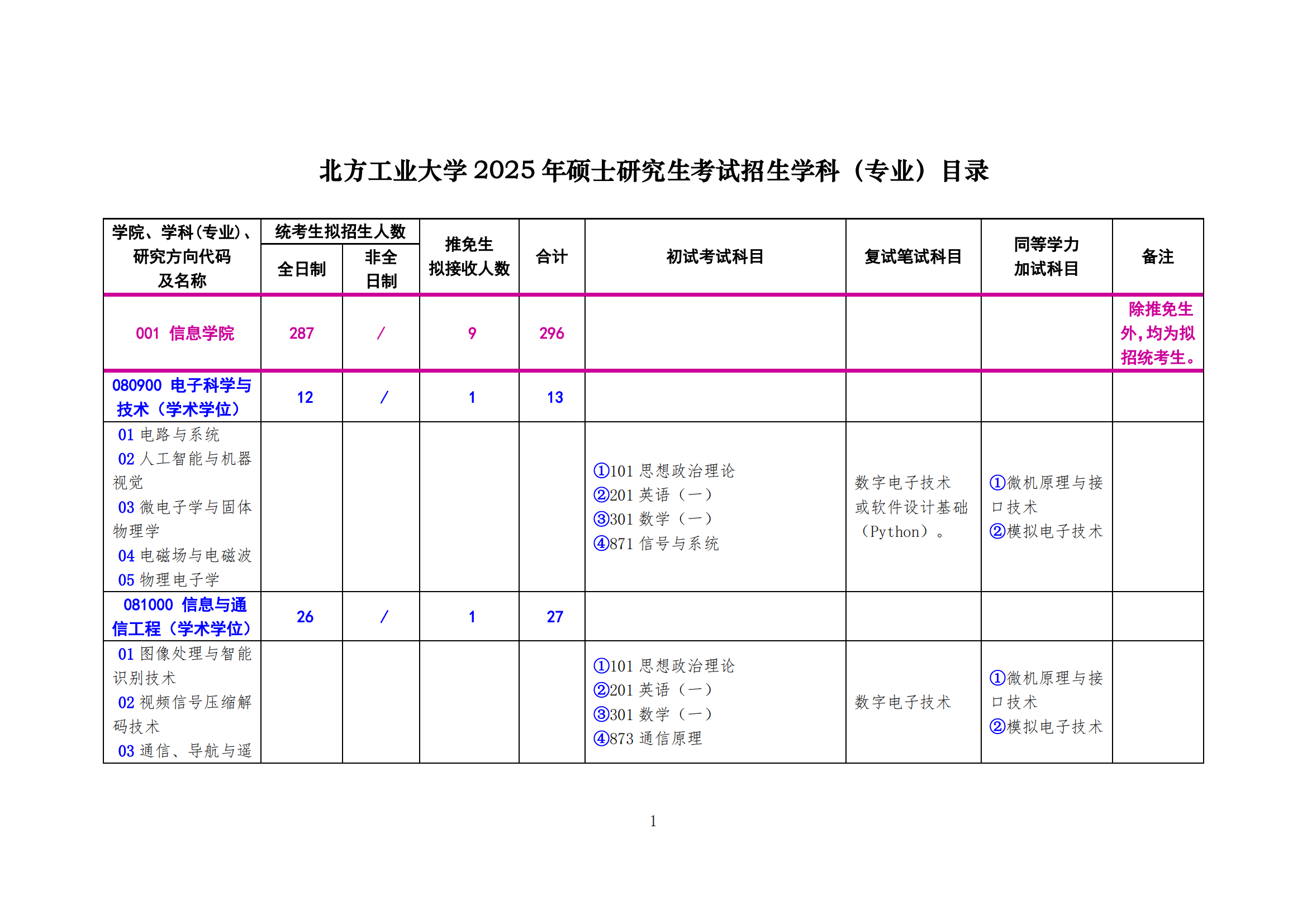 2025考研專業(yè)目錄:北方工業(yè)大學(xué)2025年碩士研究生考試招生學(xué)科(專業(yè))目錄