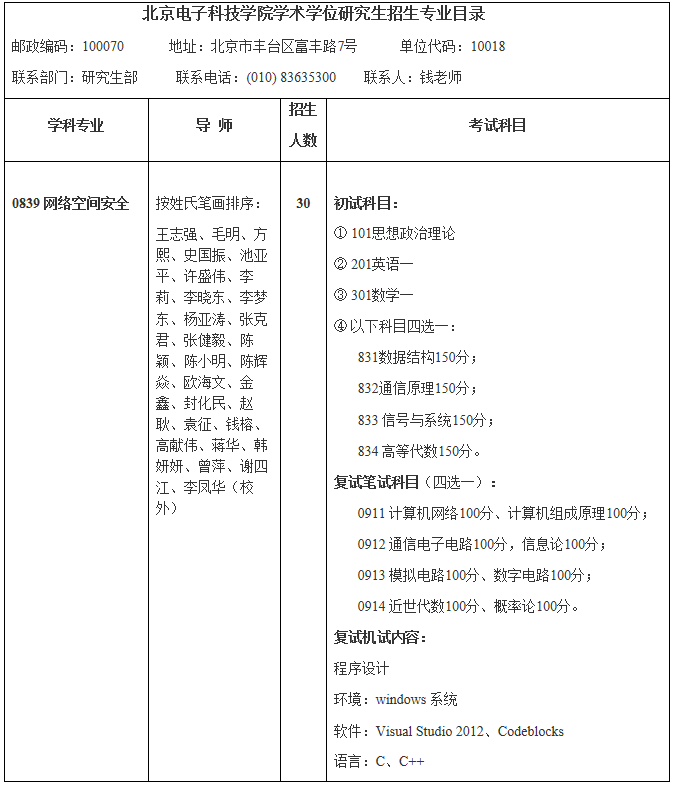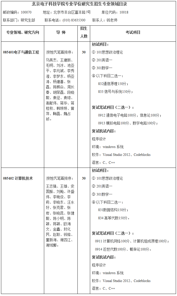 北京電子科技學院碩士學位授權(quán)學科專業(yè)目錄