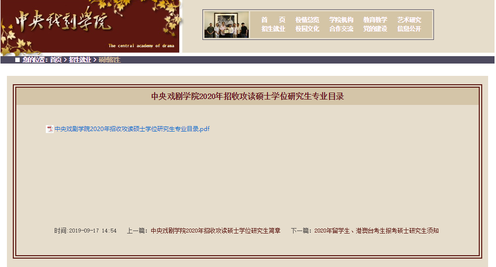 以上就是“中央戲劇學院2020年招收攻讀碩士學位研究生專業(yè)目錄”的全部內(nèi)容!祝您考研成功!