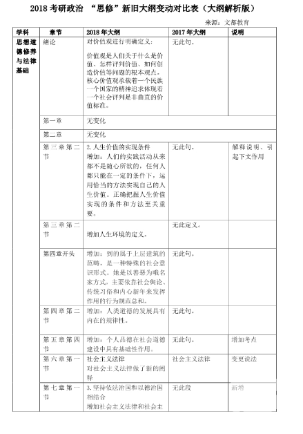 2018考研政治大綱“思修”變動對比表(大綱解析版)